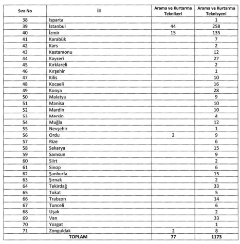 AFAD tarafından açıklanan kontenjan listesine göre tüm illerde alım yapılacak. Bazı iller için kontenjan örnekleri şu şekilde açıklandı:
