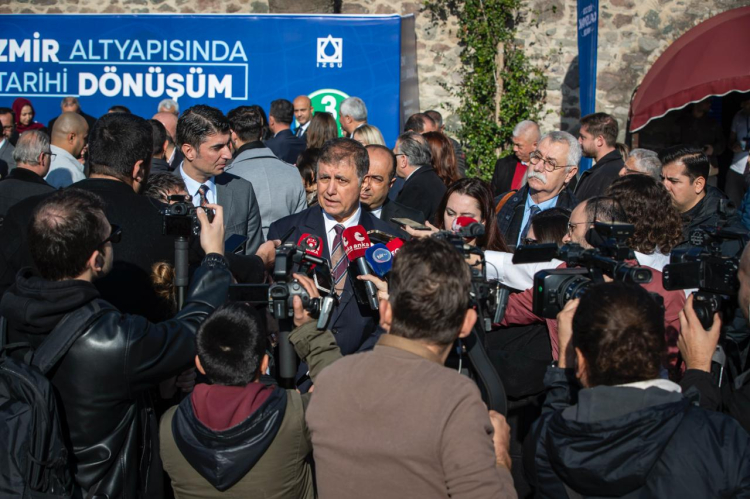 İZMİR (İGFA) – İzmir Büyükşehir Belediye Başkanı Dr. Cemil Tugay, İZSU’nun yağmur suyu ayrıştırma projesinin temel atma töreni sonrası basın mensuplarının sorularını yanıtladı ve eski Buca Cezaevi arazisine ilişkin önemli gelişmeleri paylaştı. Tugay, İller Bankası mülkiyetindeki alan için yürütülen görüşmelerin ardından plan değişikliğinin meclis gündemine geleceğini açıkladı.