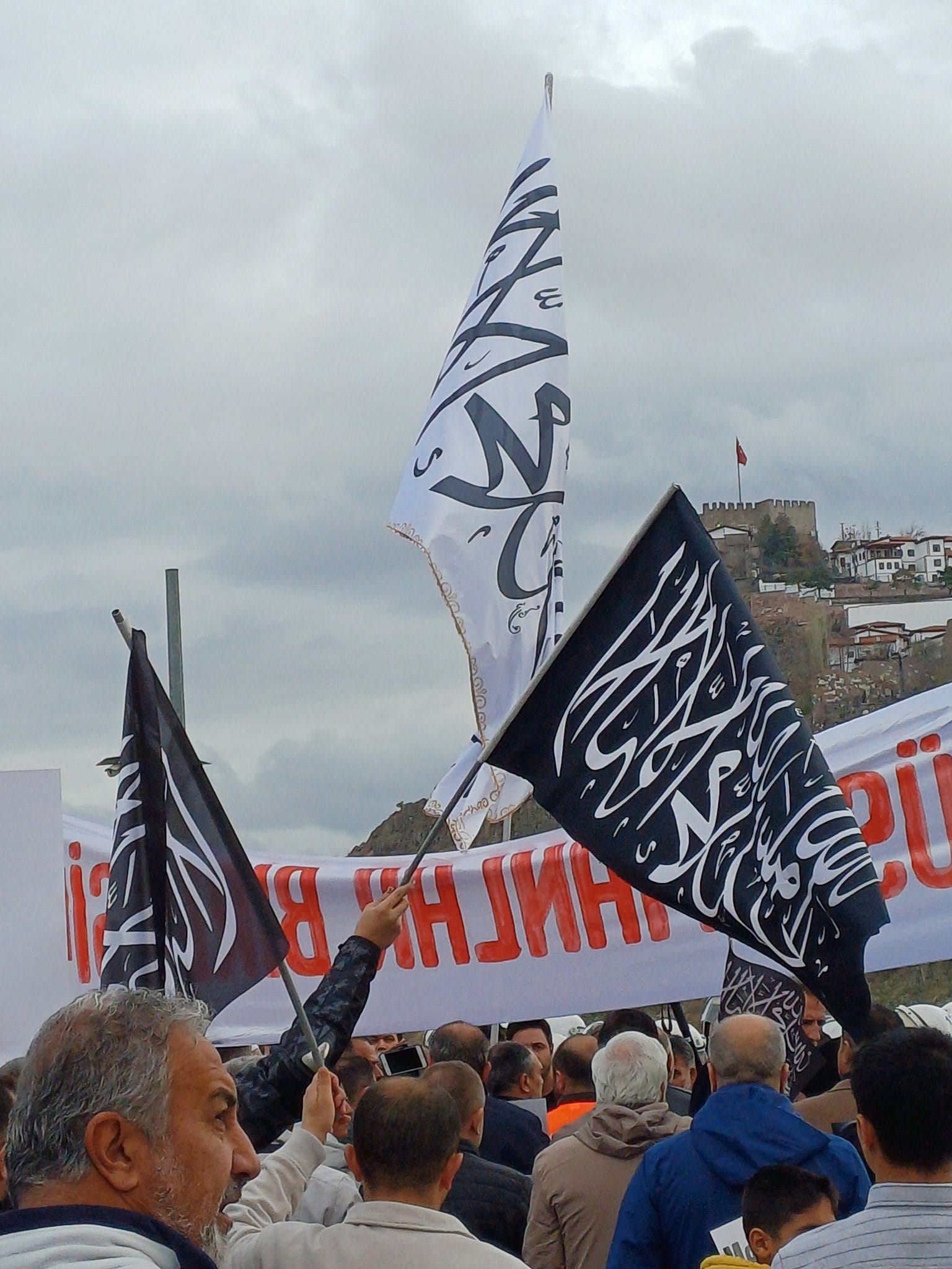 Cumhuriyet gazetesinin aktardığı bilgilere göre, Ankara Emniyet güçleri, ilk etapta grubun bu bayraklarla yürümesine izin vermedi. Bunun üzerine grup ile görevli polisler arasında tartışma çıktı. Müzakereler sırasında grup sözcüsü, tevhid bayraklarını savunarak, “Bu her Müslüman için bir şereftir” dedi.